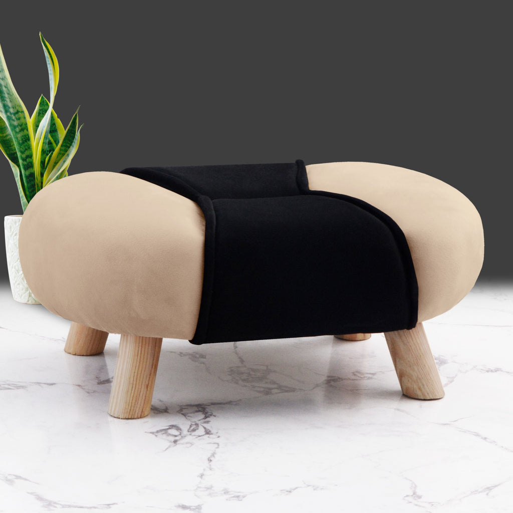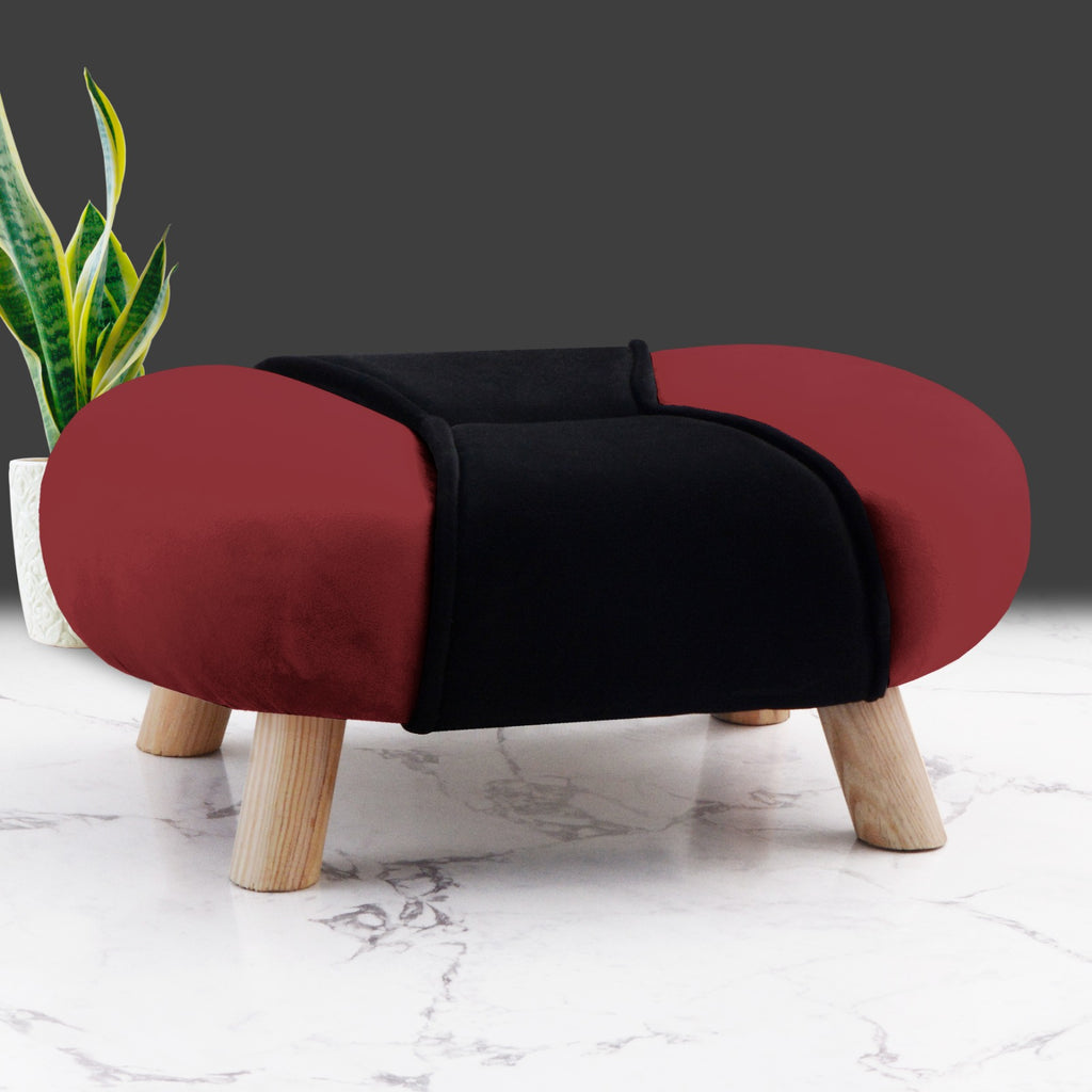 Top Notch-Quality 1 Seater Wooden Stool Stand in two tone Velvet fabric