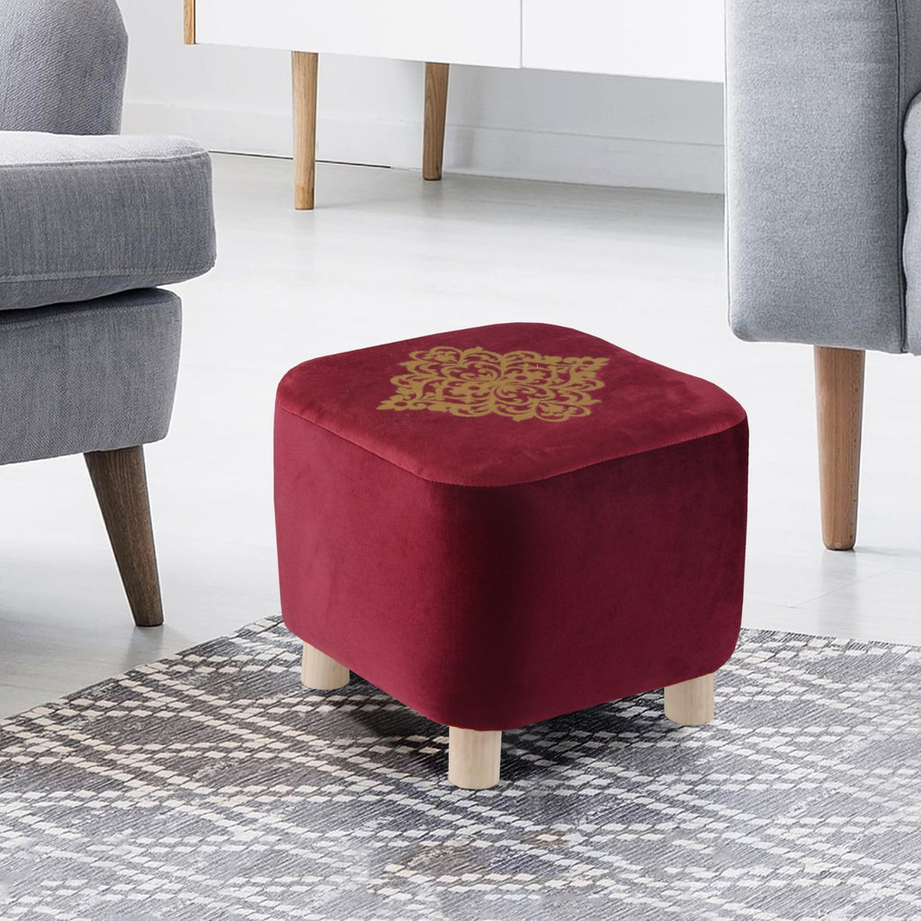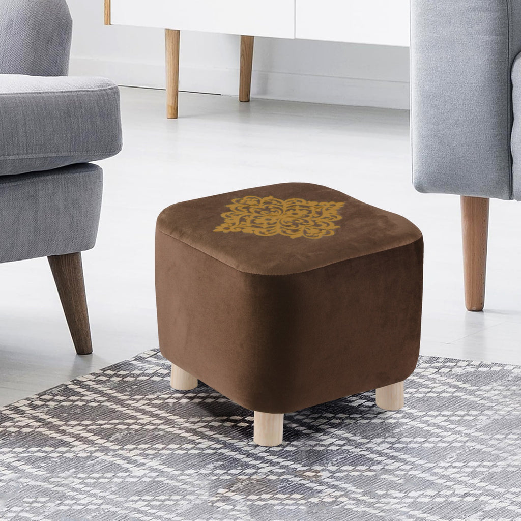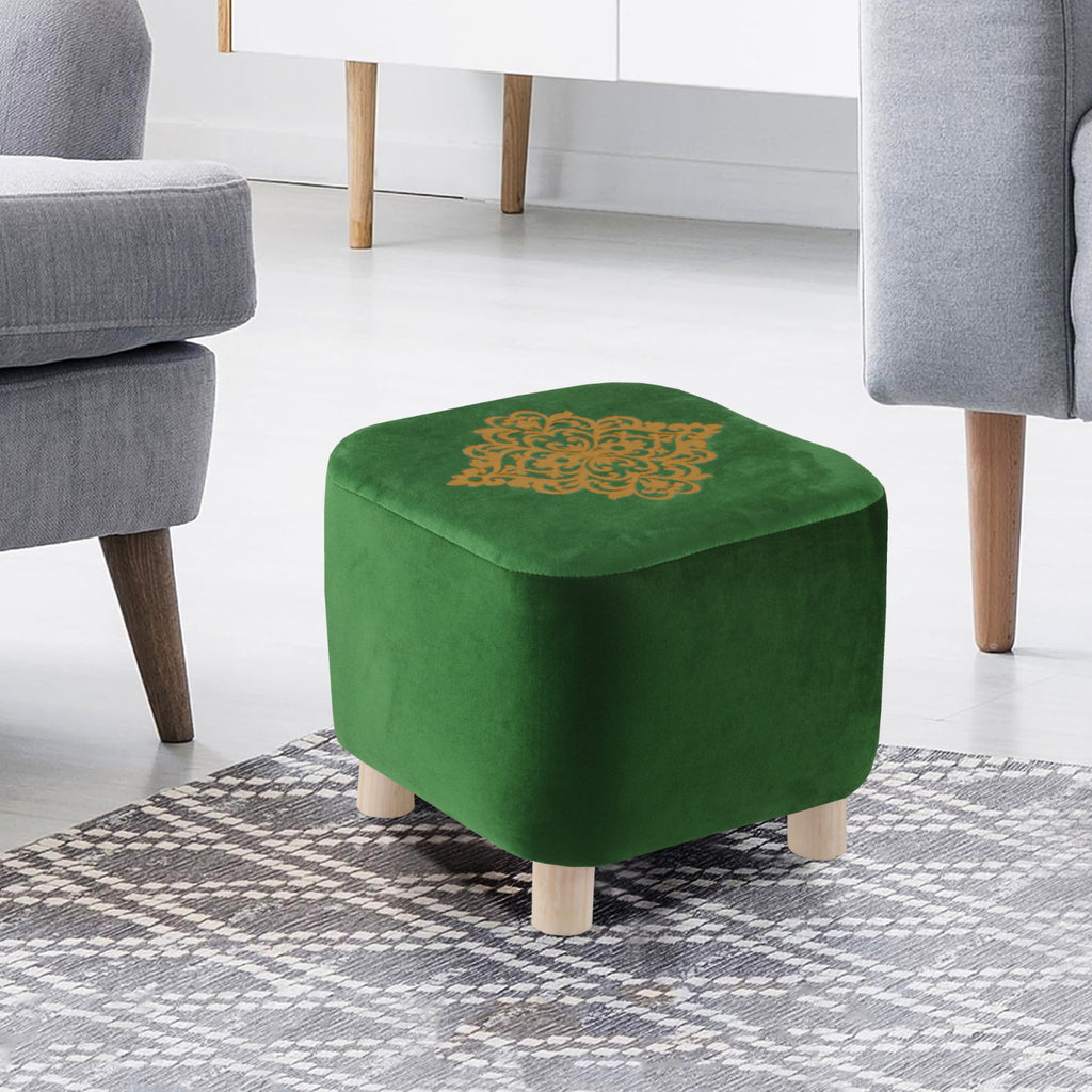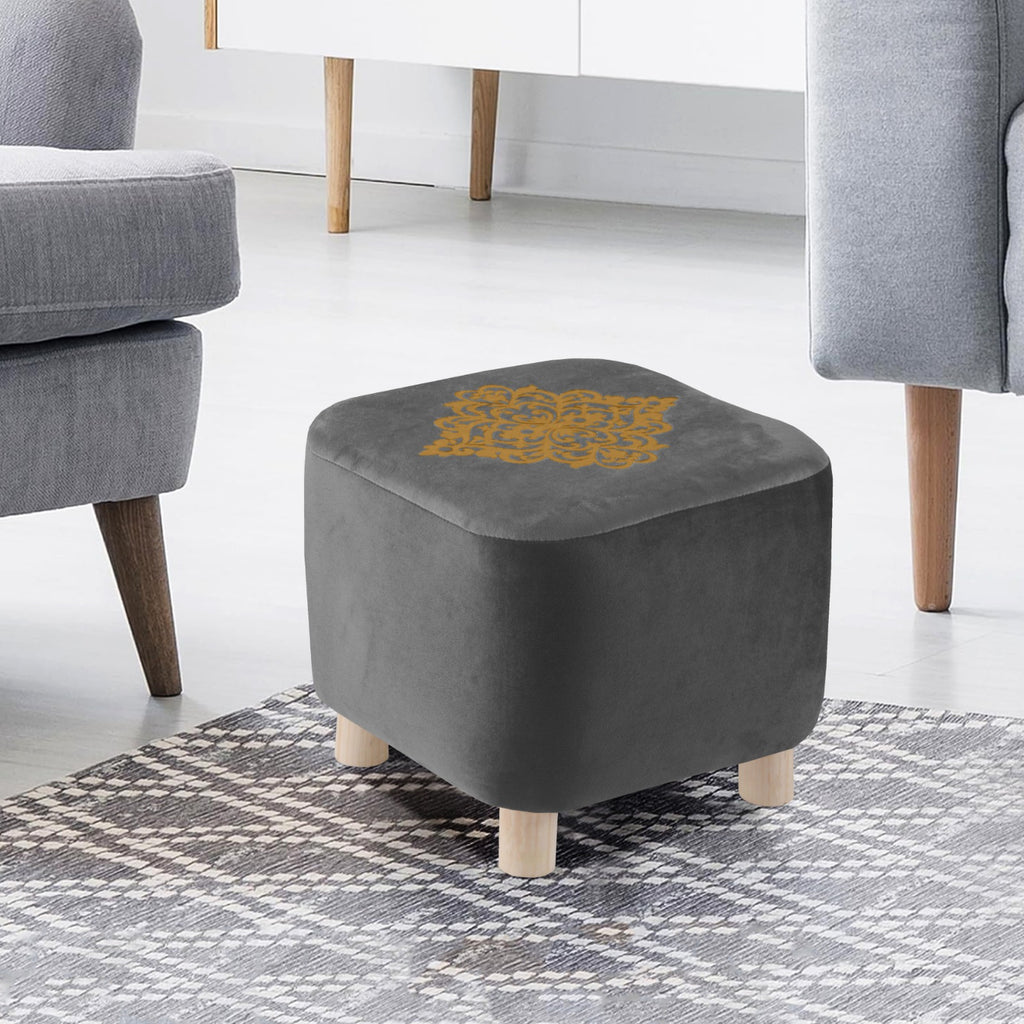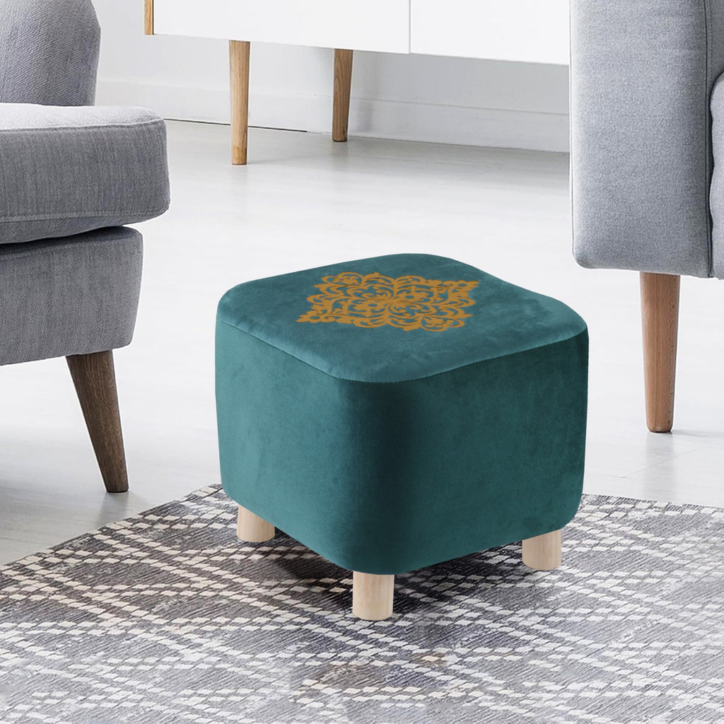 1 seater Square Shape Velvet Embroider Ottoman Stool